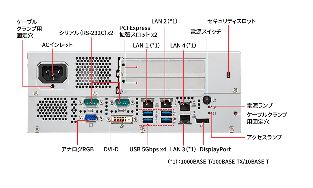 | I/Oインタフェース | USB | 4-USB 5Gbps(前面) 2-USB2.0(背面、オプション) ※2 |