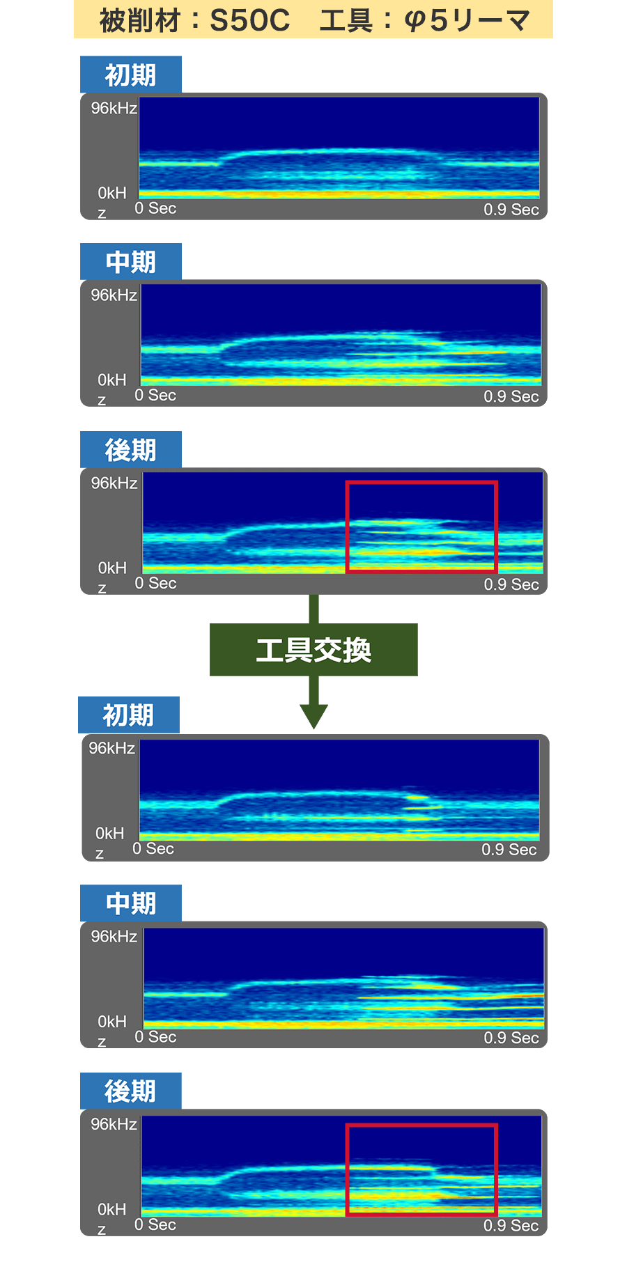 工具摩耗の振動例