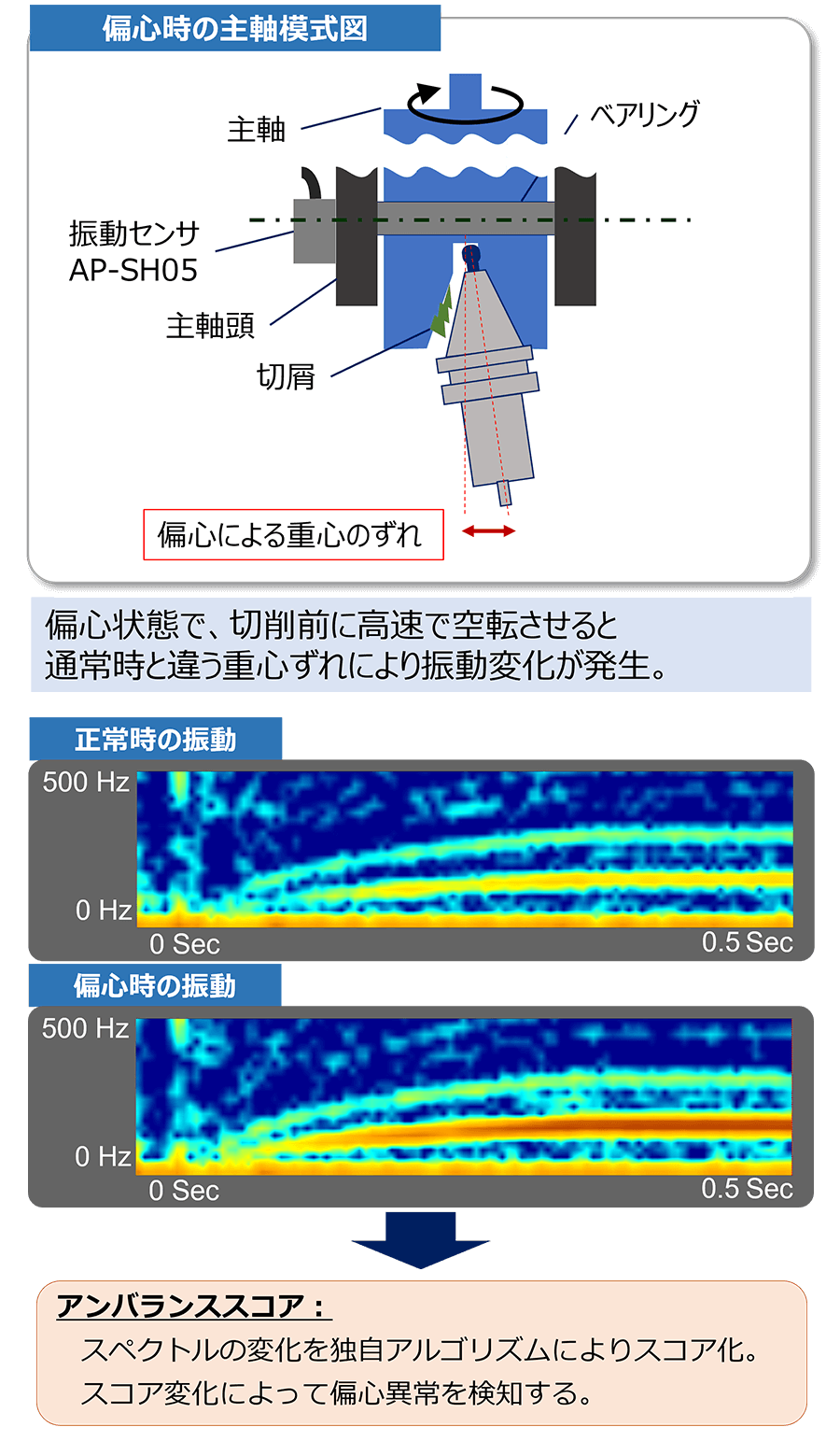 スコア変化によって偏心の異常を検知