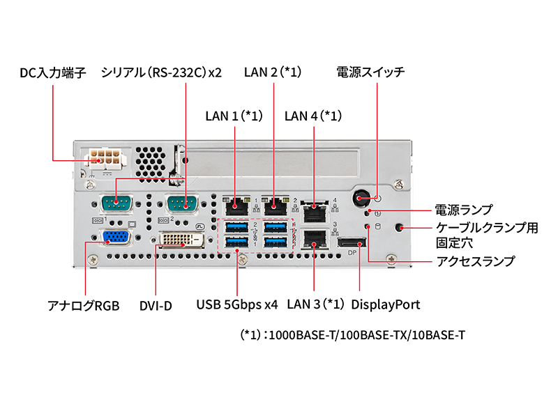 | I/Oインタフェース | USB | 4-USB 5Gbps(前面) 2-USB2.0(背面、オプション) ※2 |