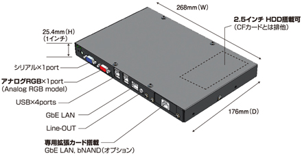2.5インチHDD ×1台 CF×1slot (Type I,True IDE) (いずれか一方を選択可) |