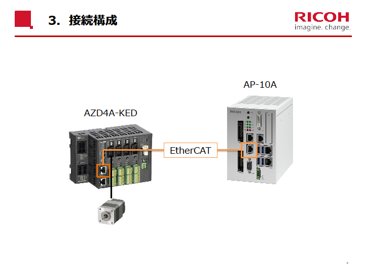 RICOH AP-10Aとオリエンタルモーター AZD4A-KEDとの接続マニュアル、サンプルプログラムを準備しております。 接続マニュアル冒頭(タイトル、目次、接続構成)をご紹介します。 詳細に関しては、ページ下部のお問い合わせフォームよりお問い合わせください。
